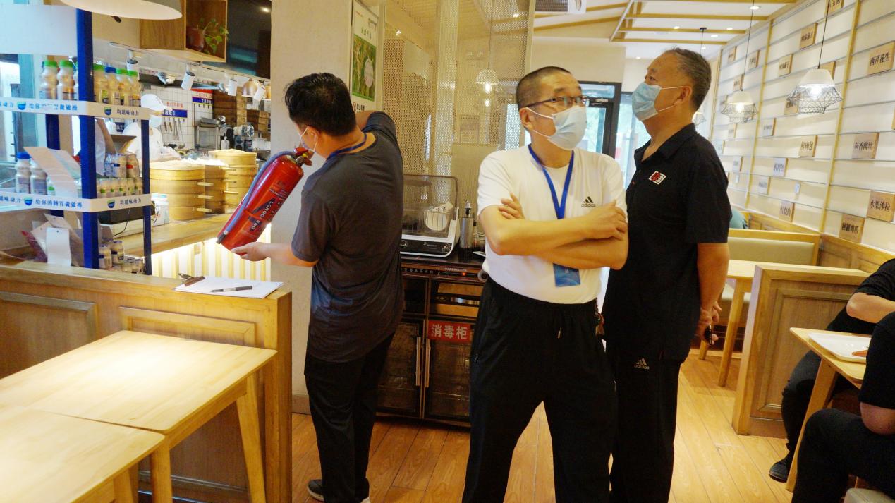 李翠清一行四人对东宿舍区沿街楼商铺逐个进行消防安全大检查,主要检查电线老化、乱扯电线、消防器材过期、消防器材放置以及是否存在遮挡现象,同时提醒广大商铺承租人做好文明城市创建工作。