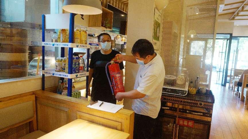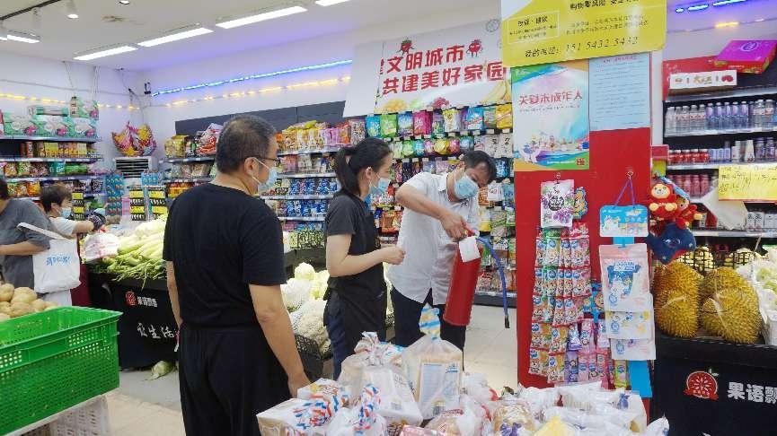 国有资产管理处副处长李翠清带领物资供应科、保卫处消防科负责人在商场商铺仔细巡查,察看消防设施配备、消防通道畅通、电线电器使用等情况,对发现的安全隐患和存在问题一一记录。